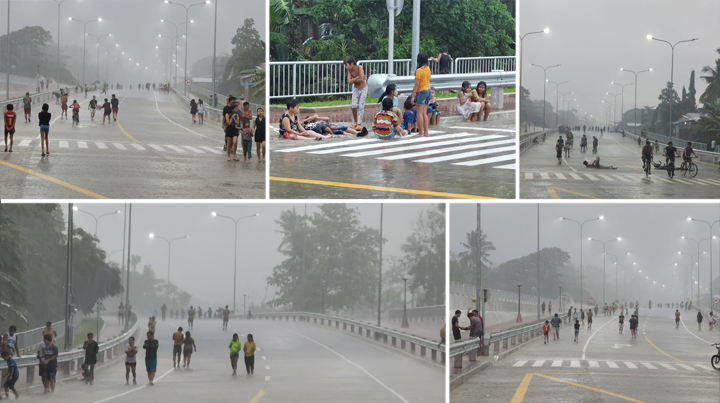 Bikers and residents enjoy bathing in the heavy rain along the CDO River Boulevard late Sunday afternoon, June 11, 2023. Photos by JSPalarca Photography.