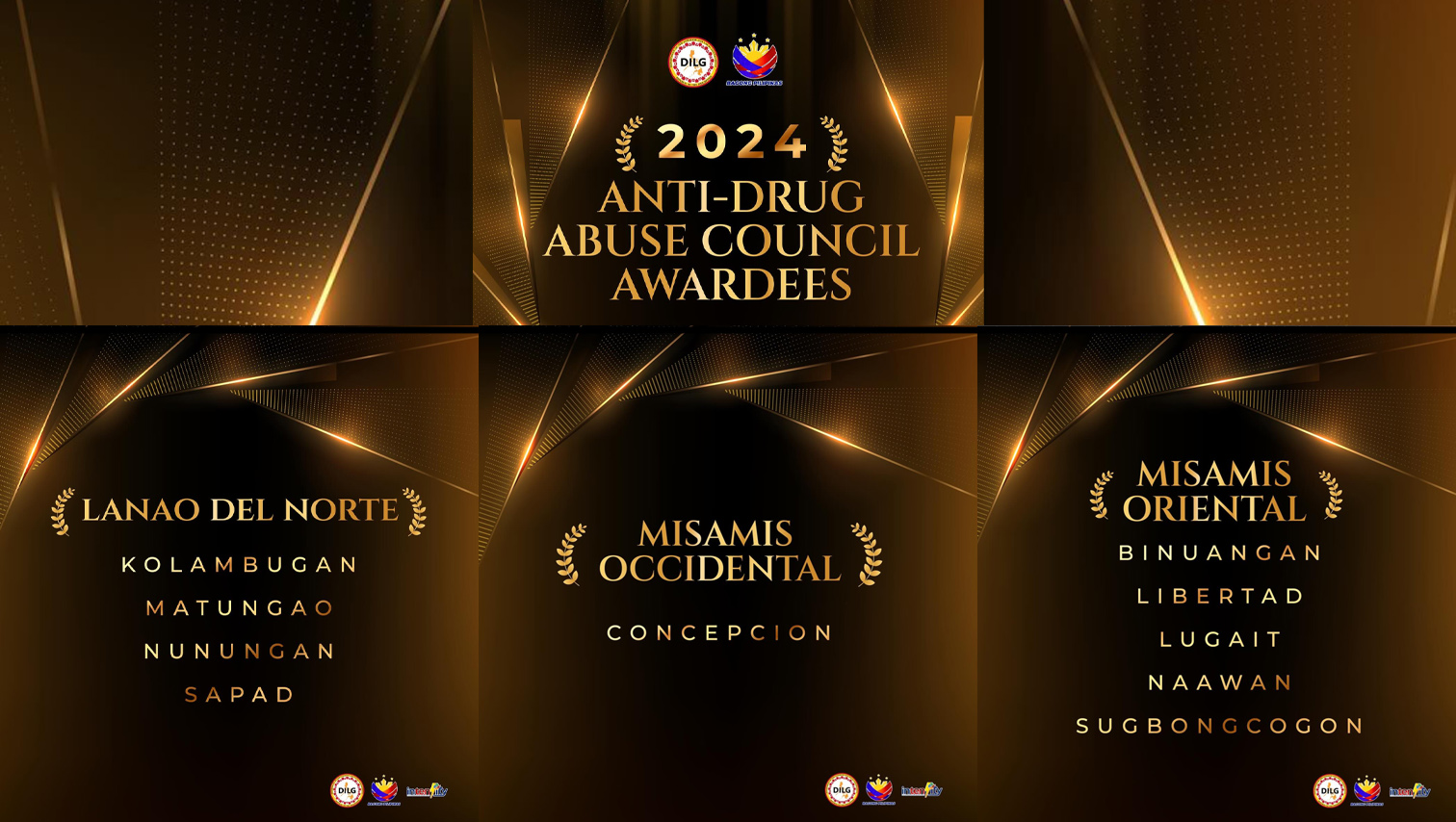 Ten local government units (LGU) in Northern Mindanao have been honored as 2024 Anti-Drug Abuse Council (ADAC) National Awardees for their exemplary commitment and success in their fight against illegal drugs through effective programs and initiatives. These LGUs will be formally recognized at the 2024 ADAC Performance Awards ceremony on November 14 at the Manila Hotel. Congratulations!