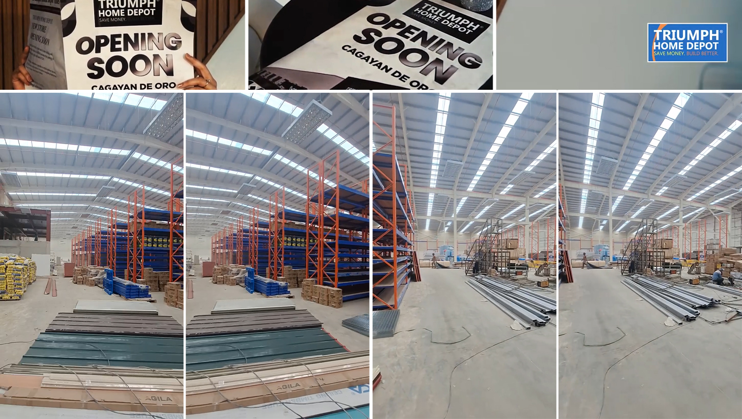 Triumph Home Depot Cagayan de Oro is set to open next month, with the grand opening reportedly scheduled for July 2. Opening promos are expected to be offered as part of the launch celebration. The home improvement store is located at the corner of Kauswagan-Bulua Highway and Saarenas Avenue (Westbound Terminal Road). In the meantime, here are some screengrabs from a video by DJRC Malaya Design & Steel Fabrication, offering a first look inside the soon-to-open store.