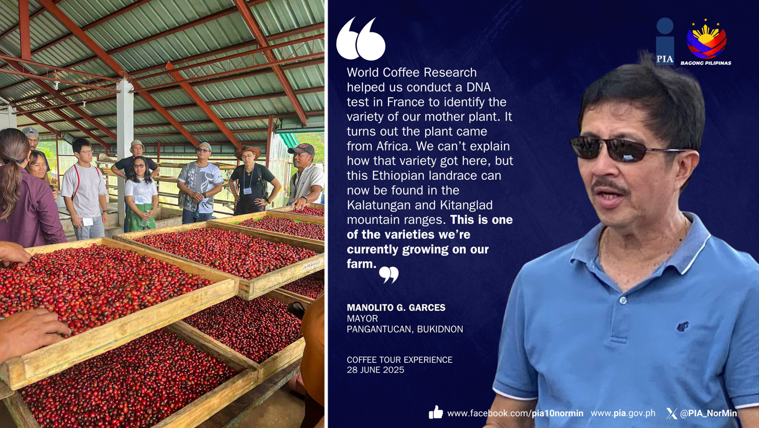 Did you know that the world-class coffee beans grown in Bukidnon’s Kitanglad and Kalatungan Mountain Ranges are actually a variety of the Ethiopian landrace from Africa? This intriguing discovery was shared by Pangantucan Mayor Manolito G. Garces during the recent Coffee Tour Experience organized by the Department of Tourism–Northern Mindanao in partnership with the Municipal Tourism Office. According to Garces, World Coffee Research facilitated a DNA test in France to trace the origins of the mother plant. How this particular variety reached Bukidnon remains unknown. Meanwhile, Garces’ Finca de Garces Farm continues to earn accolades in prestigious coffee quality competitions.