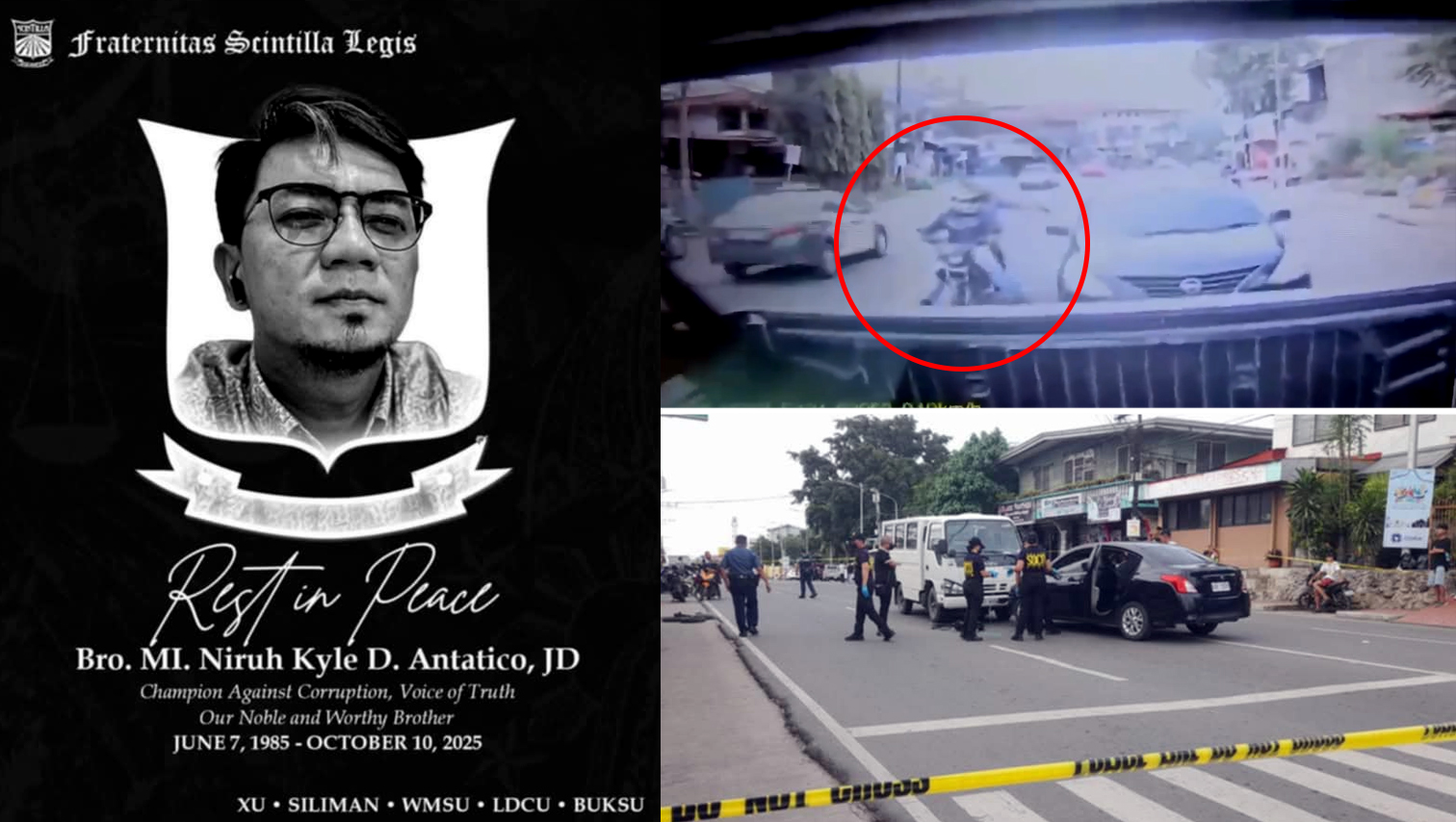 A former employee of the National Irrigation Administration (NIA) Region 10 was gunned down by motorcycle-riding assailants at Zone 1, Crossing Patag, Cagayan de Oro City, on Friday, October 10, 2025. The victim, identified as 40-year-old Niruh Kyle Antatico, was a Juris Doctor graduate known for his social media posts exposing alleged corruption within his agency, including overpricing, substandard projects, and irregularities in farmer subsidies—claims that reportedly led to his reassignment. The attack was caught on a rear dashcam, and authorities are investigating whether his exposés were connected to the motive behind the killing.